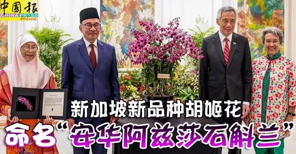😂【首相及夫人的名字變成新國的新品種國花名】新加坡新品種胡姬花 命名「安華阿茲莎石斛蘭」
