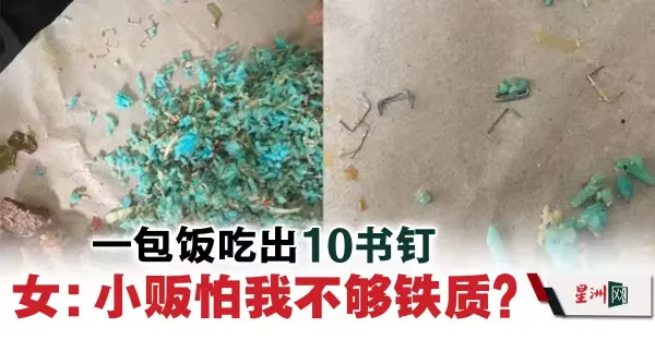 一包飯吃出10書釘 女:小販怕我不夠鐵質嗎?
