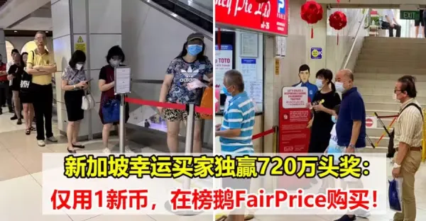 新加坡幸運買家獨贏720萬頭獎:僅用1新幣,在榜鵝的FairPrice購買