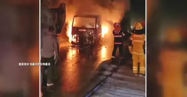 疑遭人縱火! 砂石車停堤防 車頭焦黑「剩骨架」