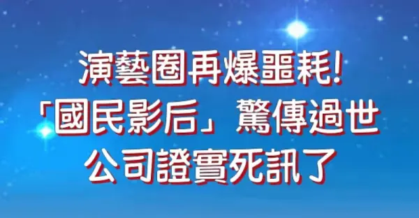 演藝圈再爆噩耗!「國民影后」驚傳過世 公司證實死訊了!
