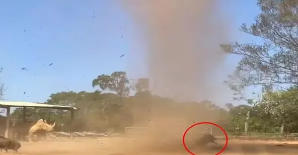 他搭小火車遇龍捲風「疣豬被卷飛」 激動逃竄全都錄!網笑:為什麼你的六福村比較好玩