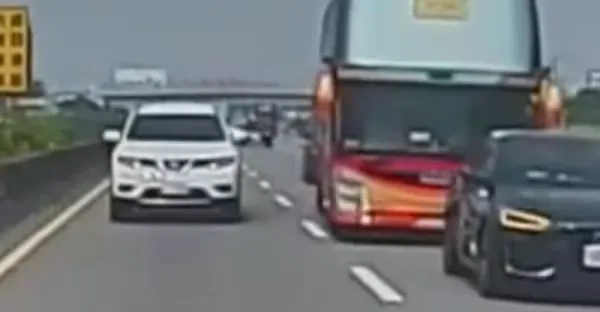 遭遊覽車"二度追撞" 小客車變形險成夾心餅乾