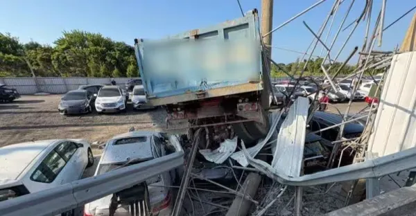 大貨車國道匝道失控撞停車場!「壓爆多車」 駕駛頭部撕裂傷送醫