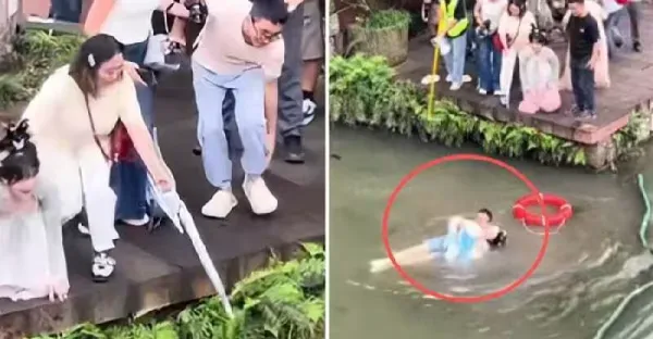 女遊客在著名景區「不慎落水」,陌生小伙「下水施救」不料令人噁心一幕發生了