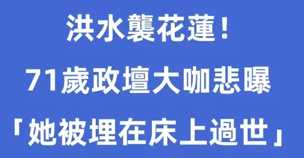 快訊/洪水襲花蓮!71歲政壇大咖悲曝「她被埋在床上過世」 痛苦發聲了!
