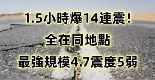 快訊/1.5小時爆14連震!全在同地點 最強規模4.7、震度5弱