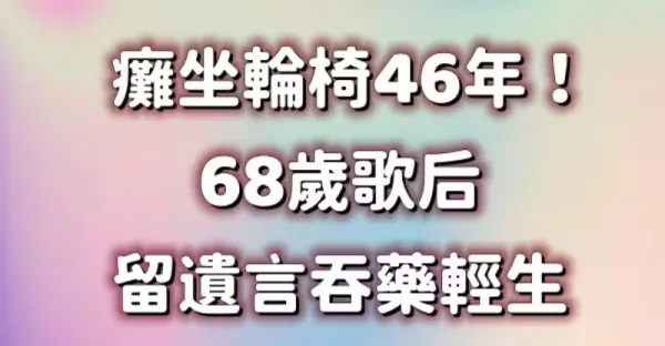 癱坐輪椅46年!68歲歌后「留遺言吞藥輕.生!」