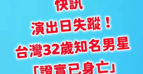 快訊/演出日失蹤 本土喜劇32歲知名男星「證實已身亡!」