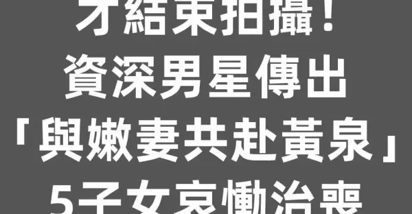 才結束拍攝!資深男星傳出「與嫩妻共赴黃泉」...5子女哀慟治喪!