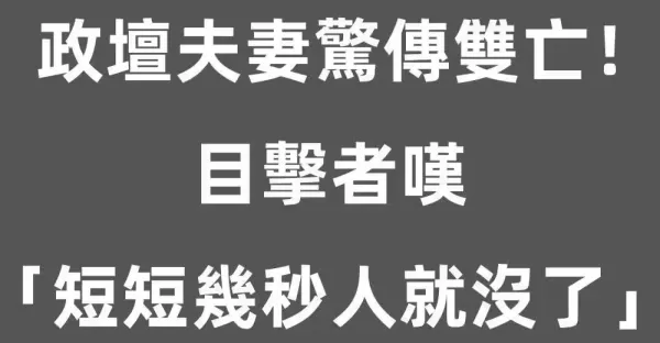 政壇夫妻驚傳雙亡!目擊者嘆「短短几秒人就沒了!」