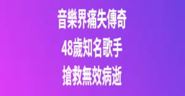 快訊/音樂界痛失傳奇!48歲知名歌手「搶救無效病逝」