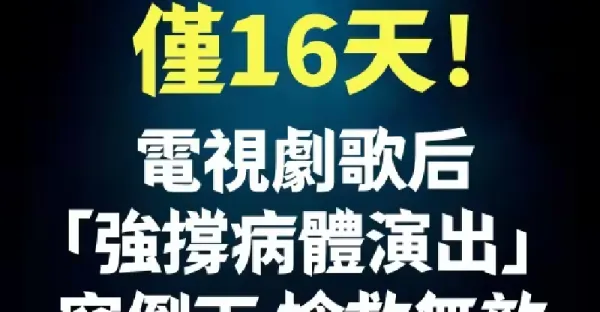 突發!高燒到去世僅16天!電視劇歌后「強撐病體演出」突倒下 搶救無效「痴情尪終身不婚」!