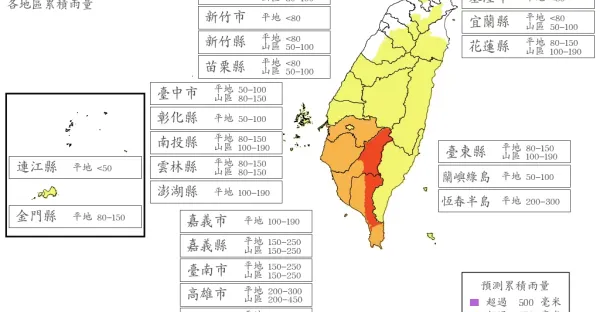 快訊/楊柳颱風5縣市明天風雨達停班課標準 24小時降雨上看450毫米!