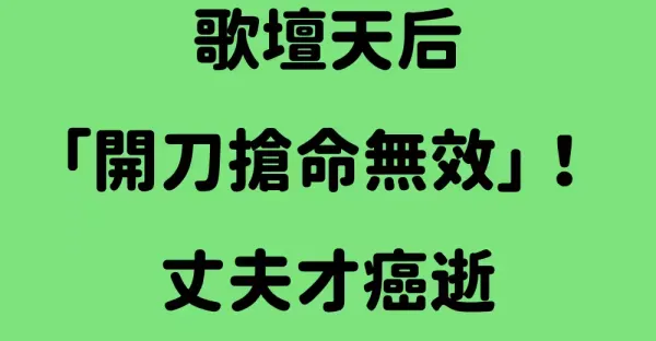 緊急/歌壇天后「開刀搶命無效」!丈夫才癌逝「她也跟著走了」