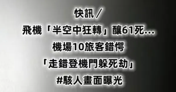 快訊/飛機「半空中狂轉」釀61死... 機場10旅客錯愕「走錯登機門躲死劫」 駭人畫面曝光