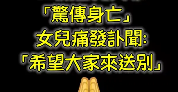 震撼!58歲台灣大咖「驚傳身亡」 女兒痛發訃聞:「希望大家來送別!」