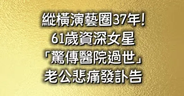 縱橫演藝圈37年!61歲資深女星「驚傳醫院過世」! 老公悲痛發訃告