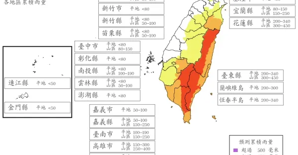 快訊/準備放颱風假?最新風雨預測出爐「明4地達停班停課標準」