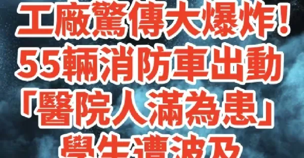快訊/工廠驚傳大爆炸!55輛消防車出動「醫院人滿為患」學生遭波及「緊急停課!」