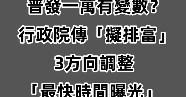 普發一萬還有變數?行政院傳「擬排富」3方向調整 最快時間曝光!