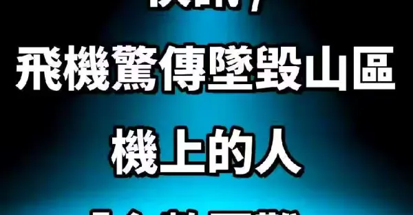快訊/飛機驚傳墜毀山區!機上的人「全數罹難!」