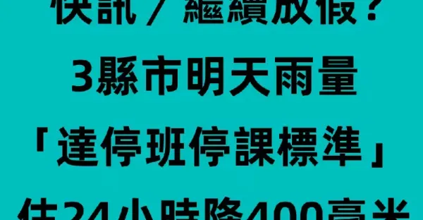 快訊/繼續放假?3縣市明天雨量「達停班停課標準...」 估24小時降400毫米