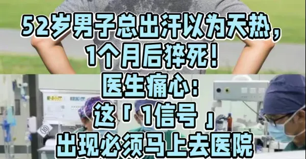 52歲男子總出汗以為天熱, 1個月後猝死!醫生痛心:這「1信號」出現必須馬上去醫院