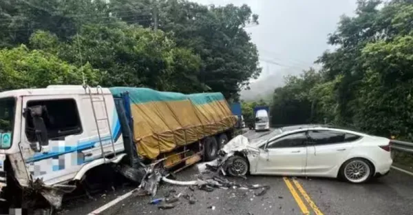 快訊/北宜公路嚴重車禍!特斯拉「攔腰撞貨車全毀」