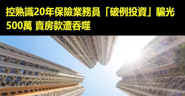 控熟識20年保險業務員「破例投資」騙光500萬 賣房款遭吞噬