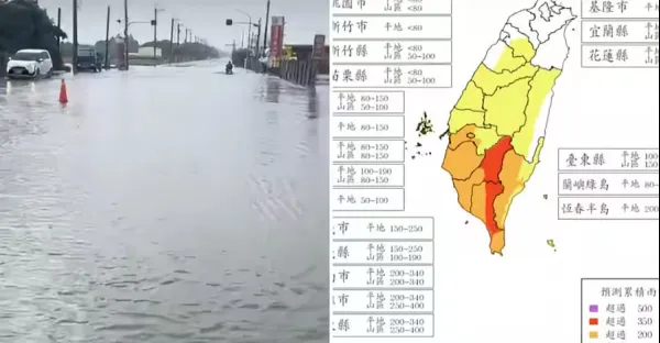快訊/3地區明天達停班課標準!24小時雨量估飆400毫米