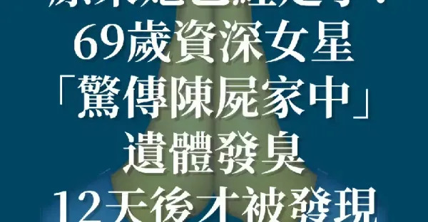 原來她已經走了!69歲資深女星「驚傳陳屍家中」遺體發臭....12天後才被發現!