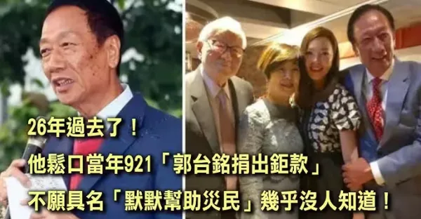 26年過去了!他鬆口當年921「郭台銘捐出巨款」不願具名「默默幫助災民」幾乎沒人知道!
