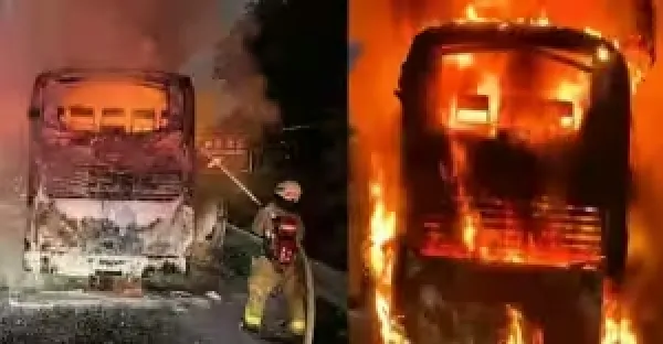快訊/國道1號「43人客運」火燒車… 火海瞬間吞沒車體!