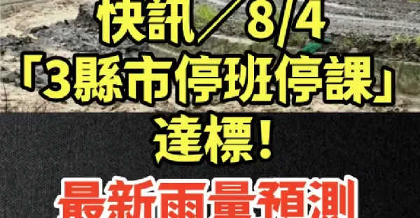 快訊/8/4「3縣市停班停課」達標!最新雨量預測,24小時轟300毫米!
