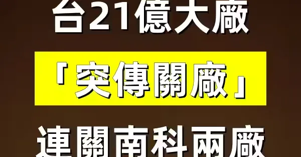 快訊/台21億大廠 「突傳關廠」 連關南科兩廠