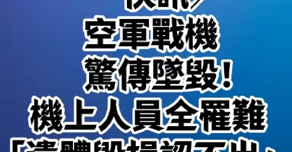 快訊/空軍戰機驚傳墜毀!機上人員全罹難「遺體毀損認不出.....」