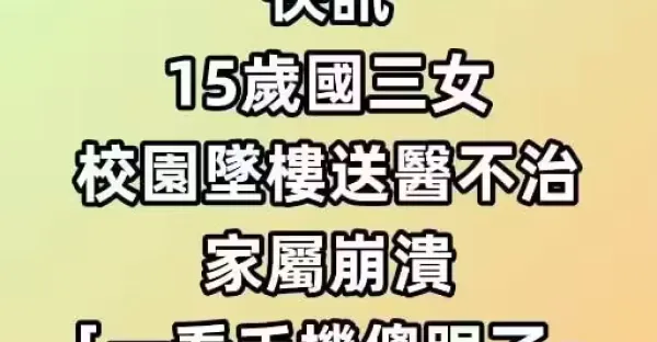 15歲國三女「校園墜樓送醫不治」 家屬崩潰「一看手機傻眼了」