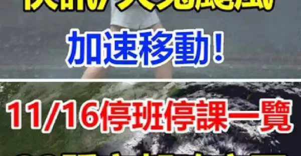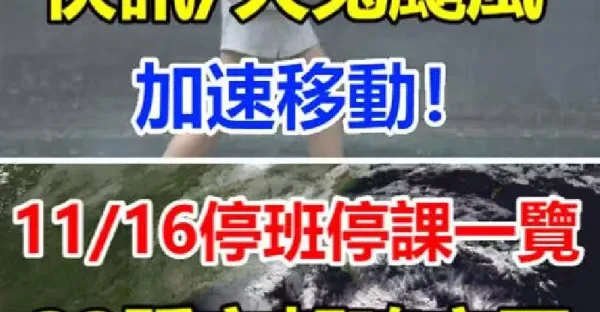 快訊 / 天兔颱風加速移動!全台「11/16停班停課」一覽,22縣市都確定了!