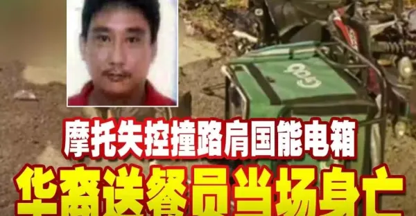 摩哆失控撞路旁電箱 華裔送餐員當場身亡
