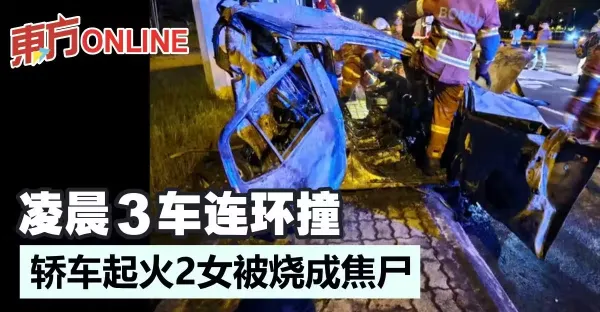 凌晨3車連環撞 轎車起火2女被燒成焦屍