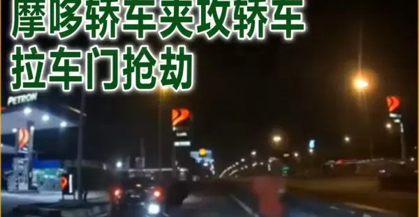 匪徒深夜油站找獵物 摩哆轎車夾攻轎車 拉車門搶劫