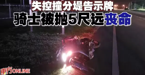 失控撞分堤告示牌 騎士被拋5尺遠喪命