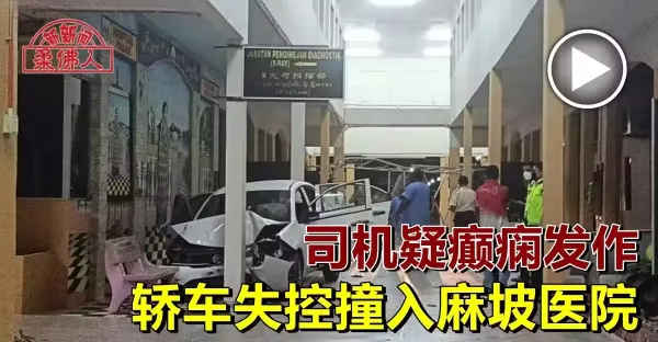 疑司機癲癇發作 轎車失控 撞入麻坡醫院大堂