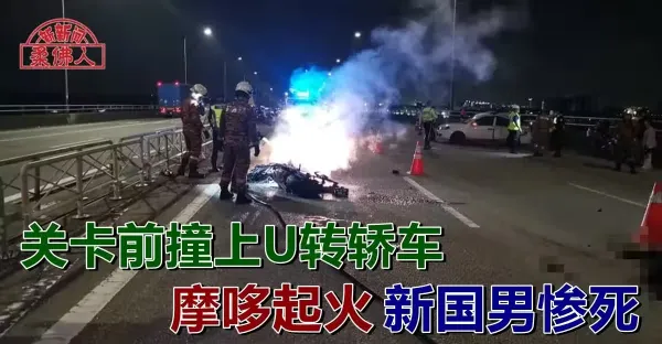 關卡前撞上U轉轎車 摩哆起火 新國男慘死
