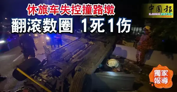 休旅車失控撞路墩 翻滾數圈 1死1傷