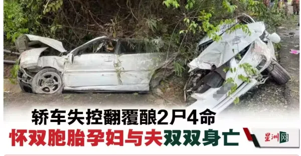 轎車失控翻覆釀2屍4命 懷雙胞胎孕婦與夫雙雙身亡