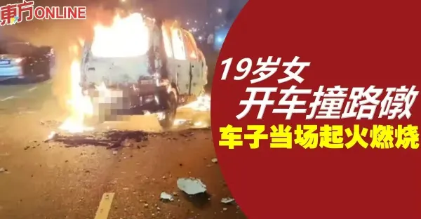 19歲女開車撞路礅 車子當場起火燃燒