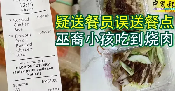 疑送餐員誤送餐點 巫裔小孩吃到燒肉