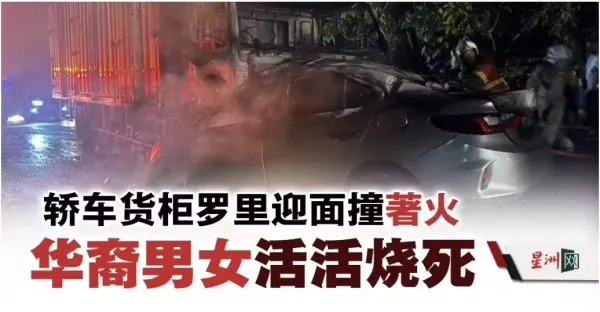 與羅里相撞後車起火 華裔男女受困慘遭活活燒死